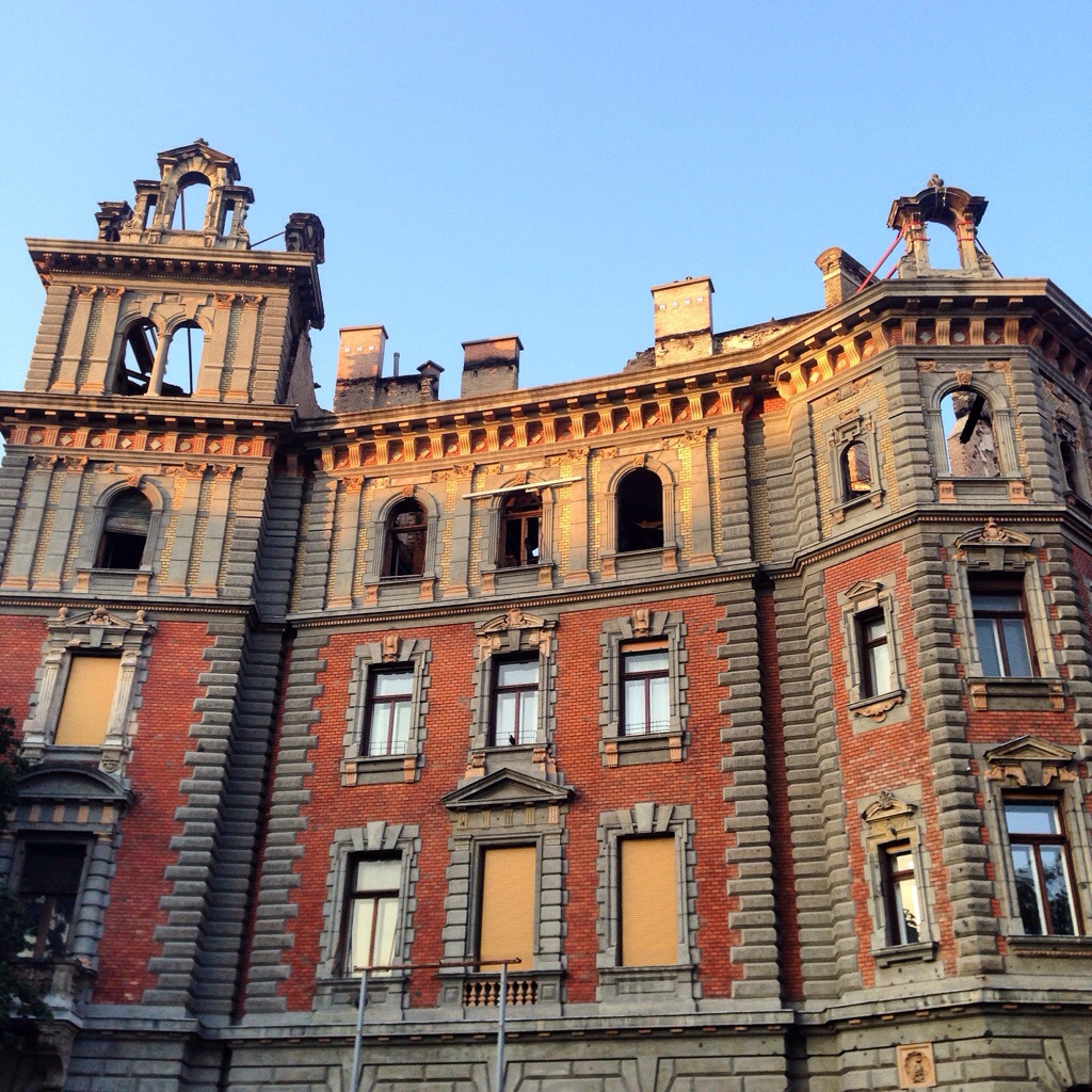 Vöröske minden ellenjavallatom ellenére ragaszkodott hozzá, hogy az Andrássyn biciklire pattanjon (igaz, leuklopastos lábbal nem szórakoztató a sétálás) és elkarikázzon a reggeli napfénybe (később azért írt, hogy egyben hazaért). én pedig ott maradtam egyedül némi zenével és teljes lelki békémmel. hazafele vettem az irányt a hatodik kerületen keresztül, megnéztem a szegény kiégett épületet az köröndnél, ami valamiért a reggeli napfényben még így is nagyon festői volt. ezerszer jártam ezeken az utcákon, legkorábbi gyerekkori emlékeim kötődnek az Andrássyhoz, hisz ott jártam óvodába, mégis úgy tudtam rácsodálkozni minden épületre, mitha most látnám először.