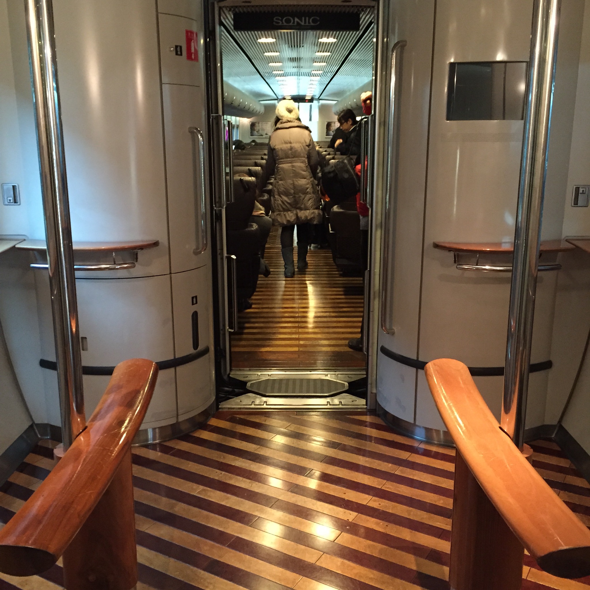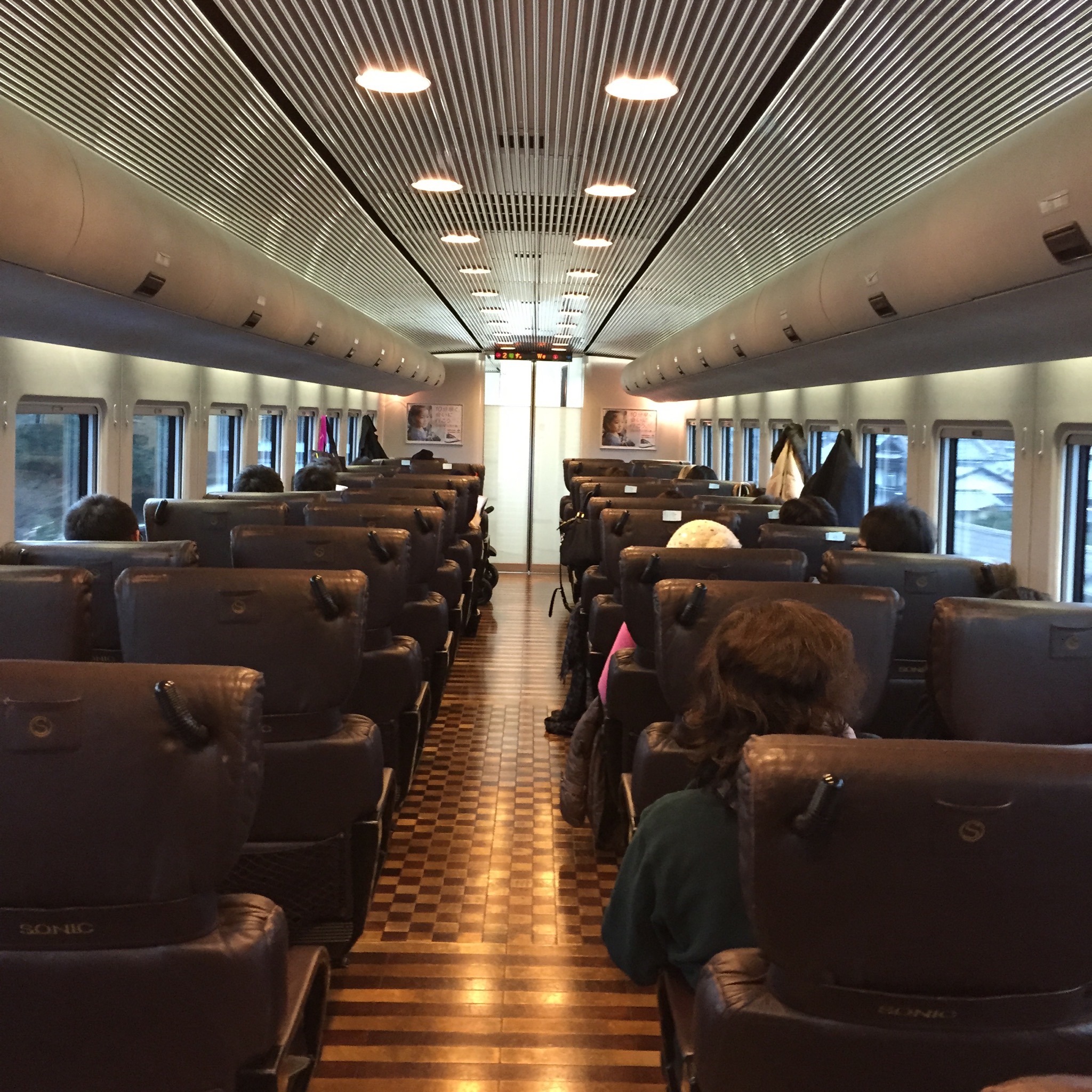 a mai napon japan utunk egyik ujabb, varatlan fenypontjahoz ertunk amikor felszalltunk a nagasakiba vezeto vonatunkra. egyik percben meg a peronon toporogva azon filoztunk, hogy vajon lesz-e wc a vonaton, masik percben az allunkat probaltuk osszeszedni az intarzias parkettarol. igen, nem viccelek, parketta volt a vonaton, valamint borulesek, kulon telefonalozona fa ulokekkel (a japan vonatokon tilos az utasterben telefonalni, a kocsik elejen es vegen lehet csak mobilon beszelni), egy akkora wc, mint a szobam mr.yingnel es olyan rejtett vilagitas, amit egy jobb urhajo is megirigyelne. es meg csak nem is elso osztalyon utaztunk. egyszeruen felfoghagatlan. fotok alant.
