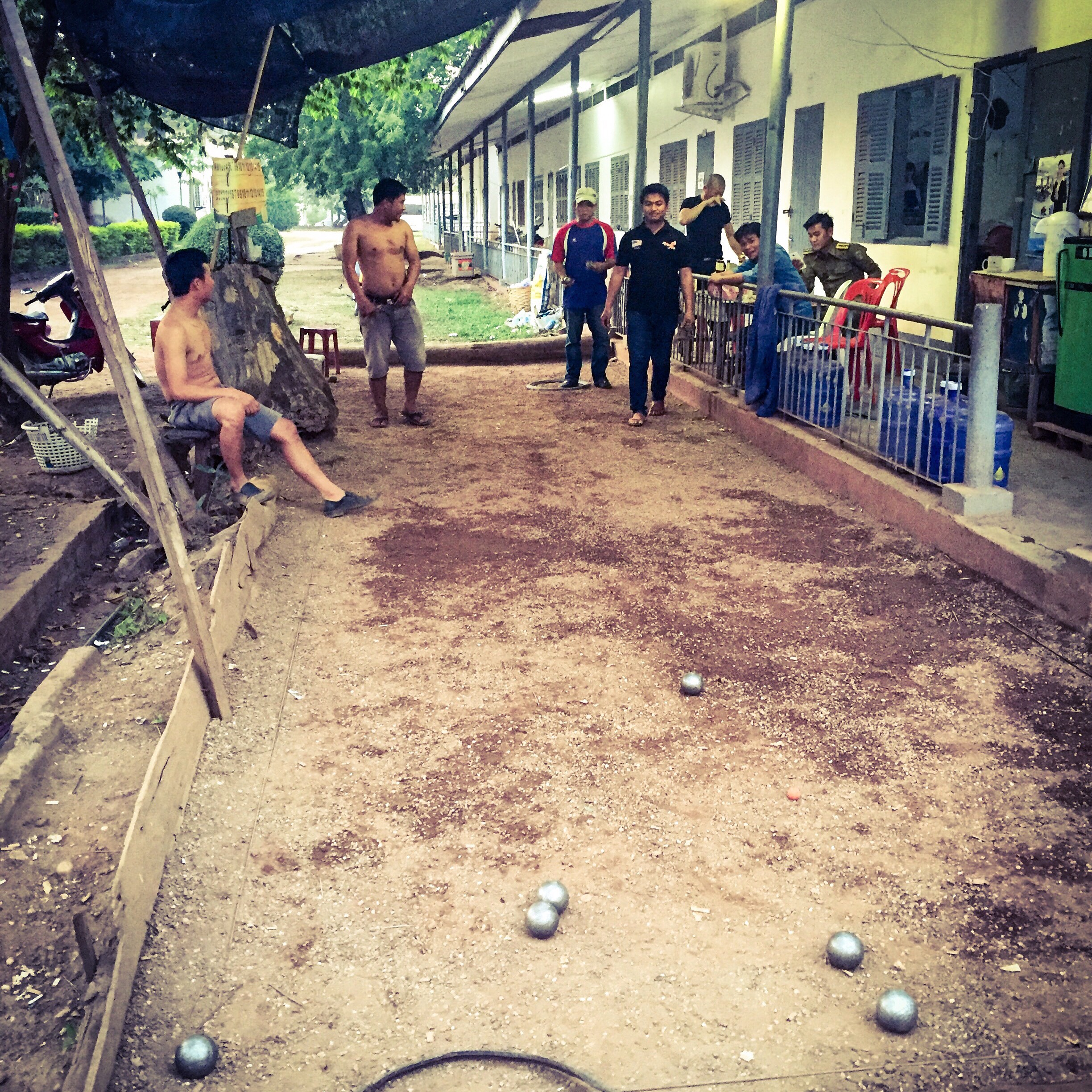 igyekszem majd kepeket is feltolteni, egyelore ezt az egyet mutatnam, ahol a francia gyarmati multat idezo hetkoznapi kep lathato, amint a helyiek egy kert vegeben epp petanque-oznak.